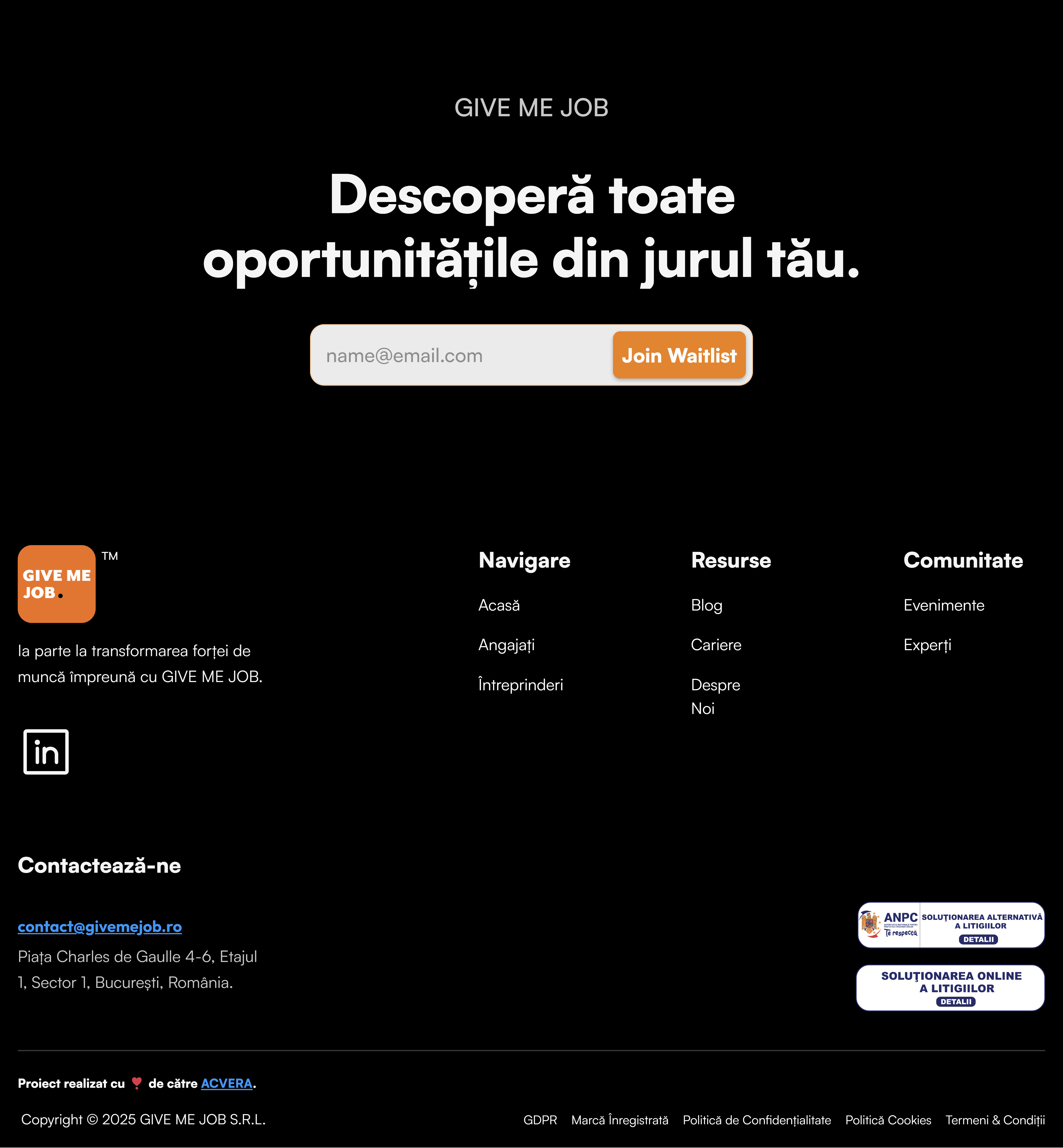 GIVE ME JOB is a purpose-built landing platform that educates and builds trust with job seekers, employers, and investors by clearly communicating our app’s unique value proposition and future vision. Designed with modern, user-centric principles and optimized for SEO, the website drives user acquisition, enhances brand credibility, and fosters community engagement as the essential gateway to our mobile solution.