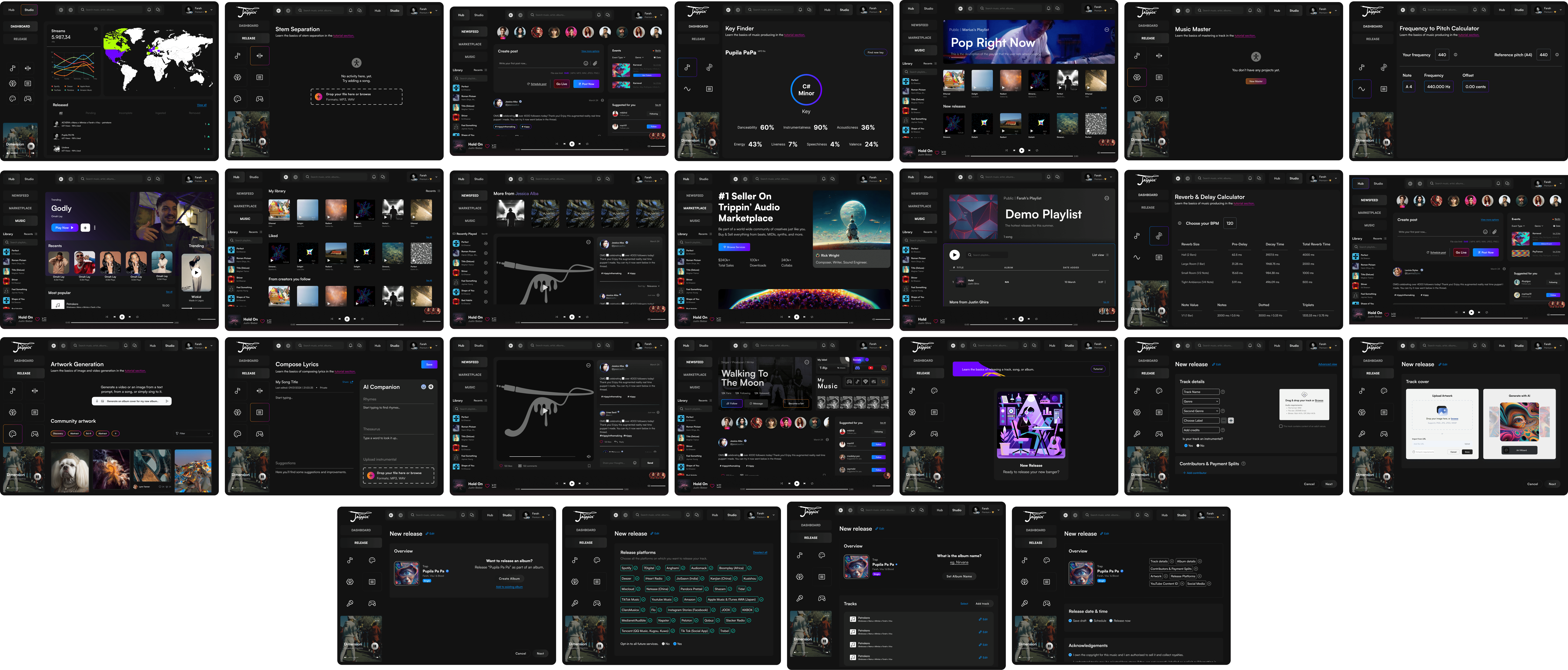 Trippin' Audio is a groundbreaking all-in-one platform designed to empower artists at every stage of their musical journey. From bedroom producers to chart-topping superstars, Trippin' Audio provides the tools, connections, and opportunities needed to create, collaborate, and thrive in today's dynamic music landscape.