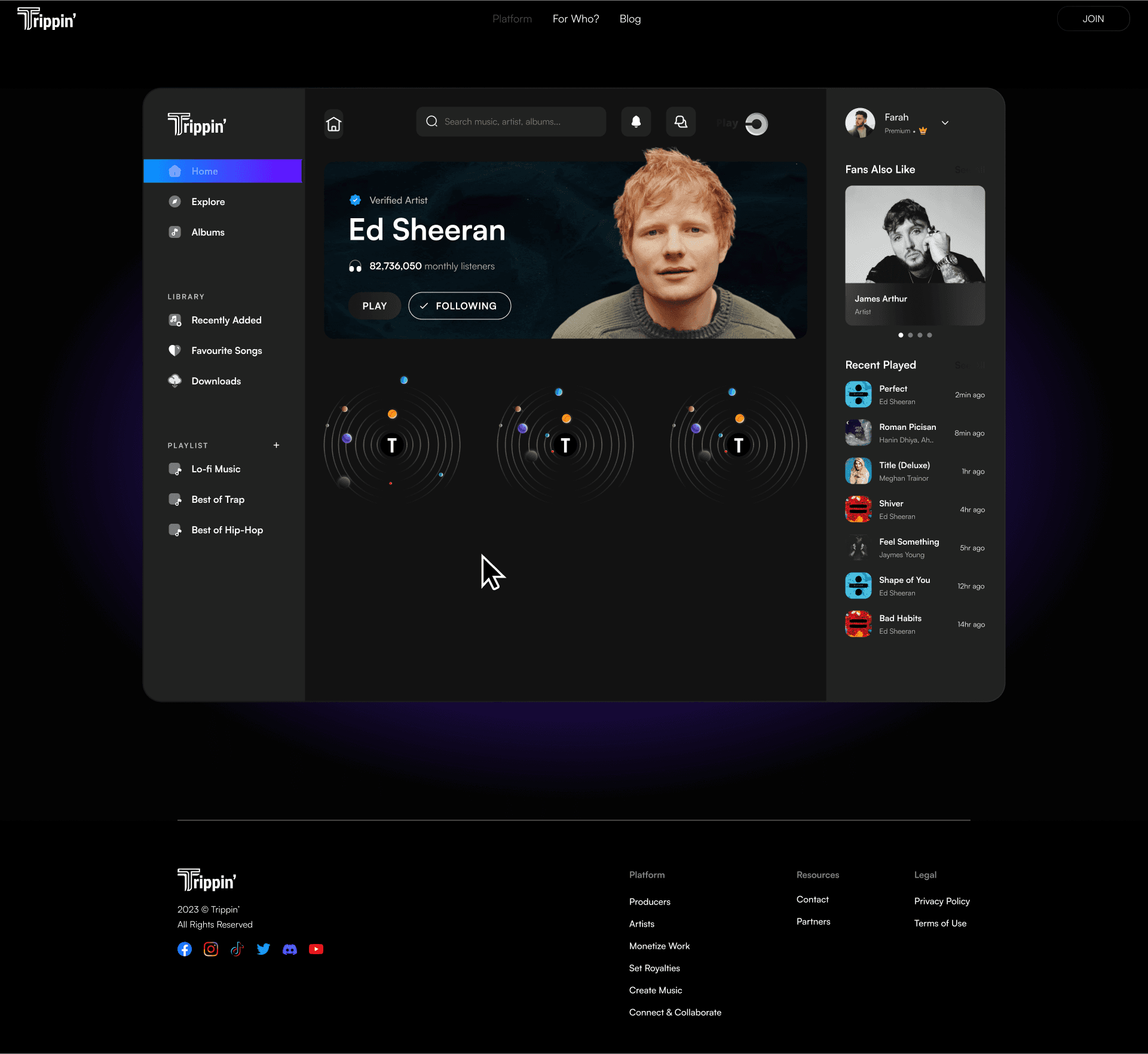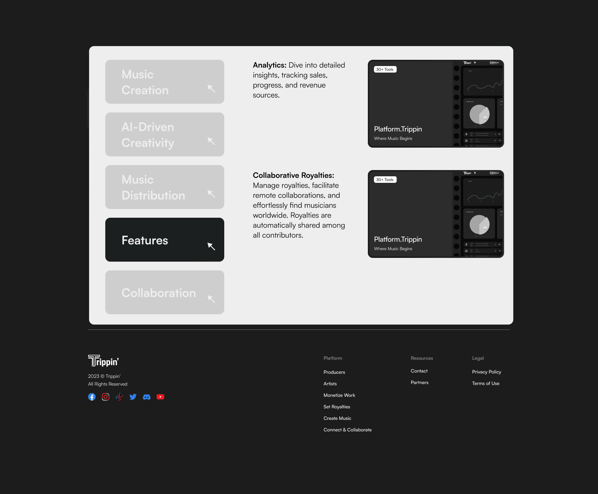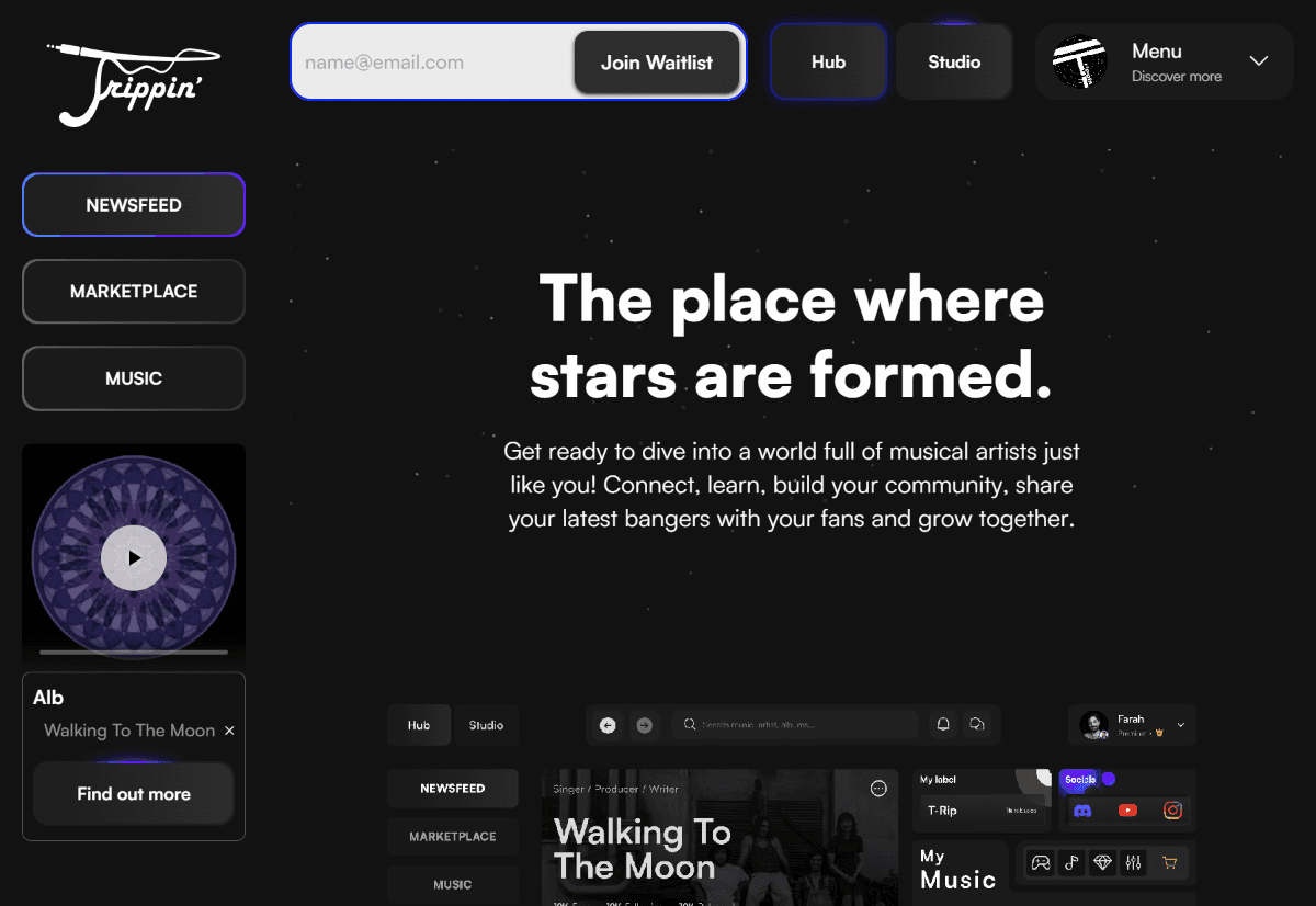 This research underscored the need for Trippin’ Audio to offer a centralized ecosystem where artists can create, distribute, promote, and monetize their work without competing for attention in non-music-centric spaces. The platform integrates the best aspects of social engagement while prioritizing music-first discovery, community interaction, and revenue opportunities.