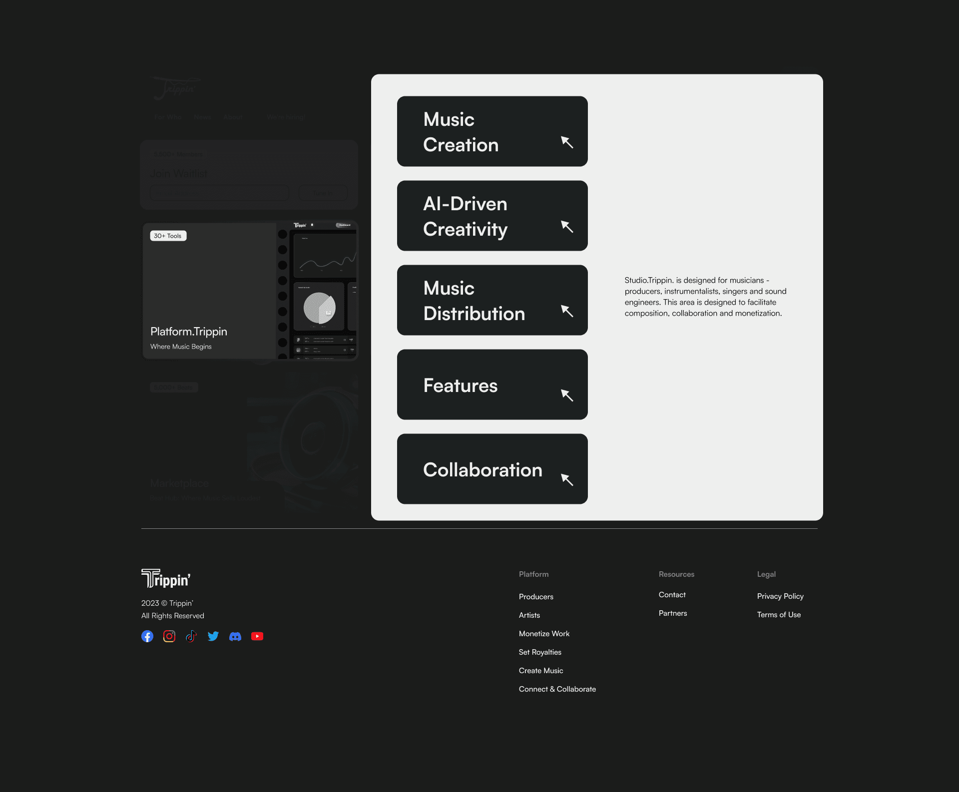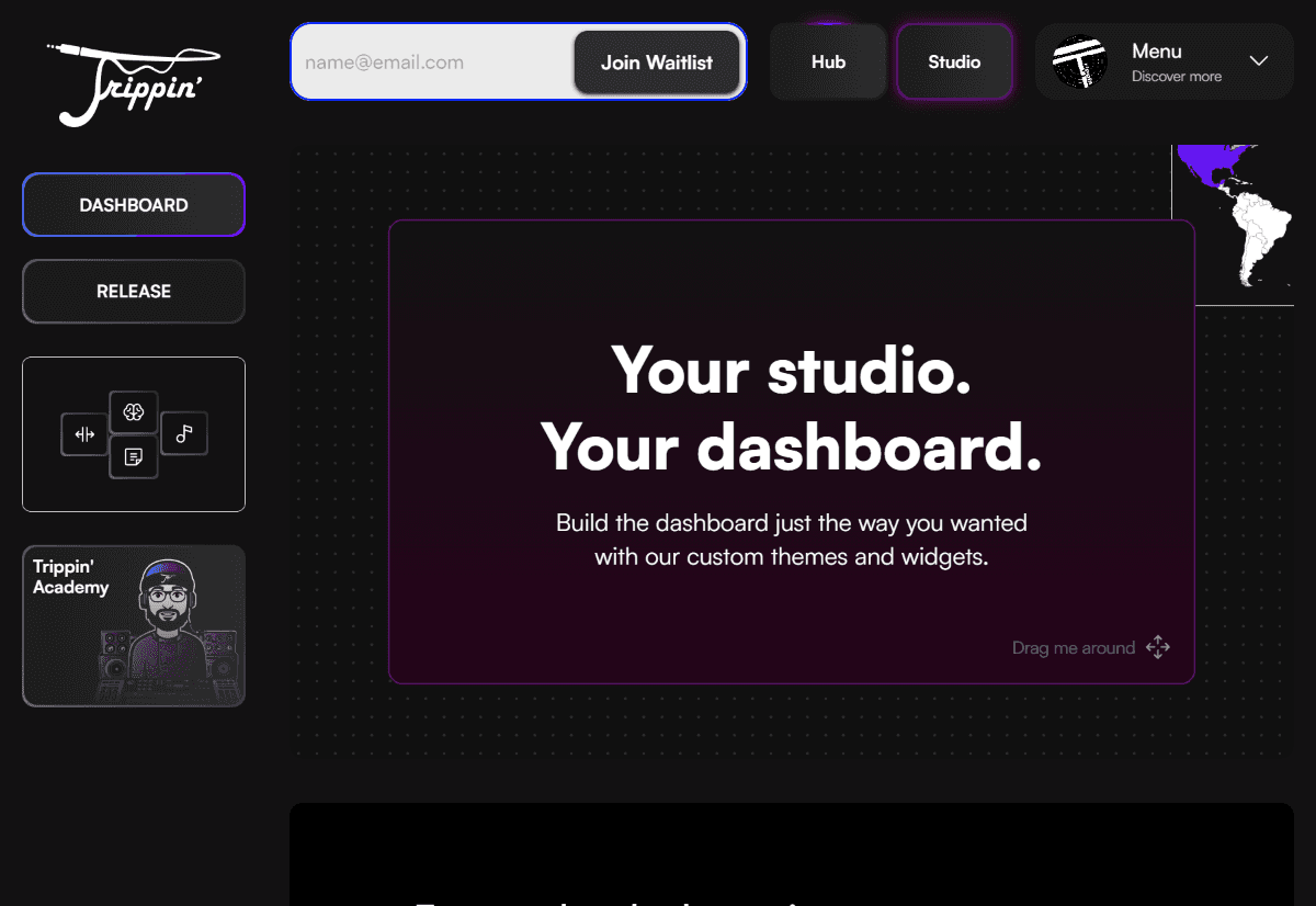 Trippin' Audio is a groundbreaking all-in-one platform designed to empower artists at every stage of their musical journey. From bedroom producers to chart-topping superstars, Trippin' Audio provides the tools, connections, and opportunities needed to create, collaborate, and thrive in today's dynamic music landscape.