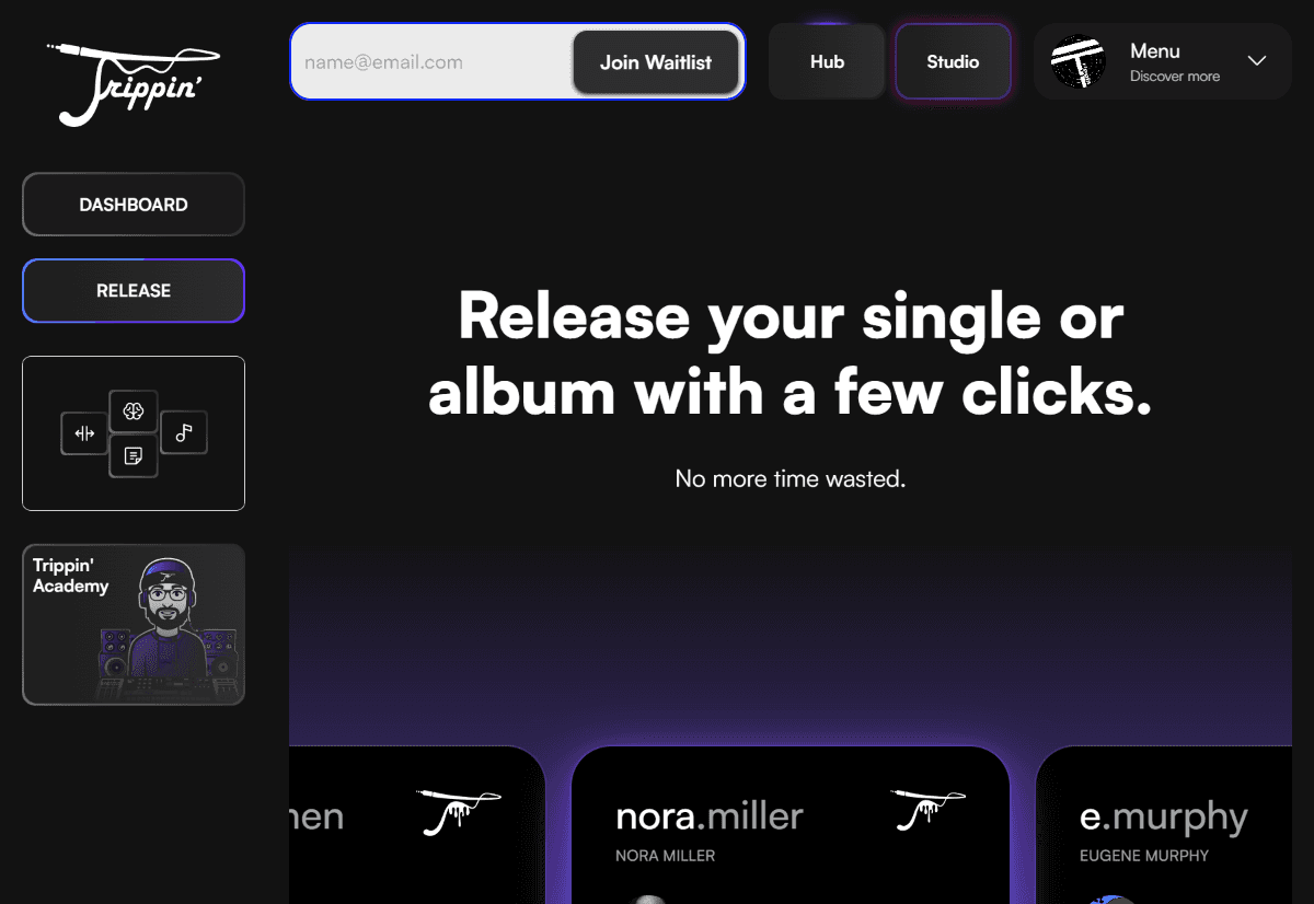 High-level explanation of how Trippin’ Audio helps independent artists distribute, promote, and monetize their music.