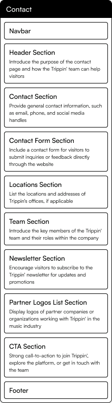 I iterated through three distinct versions of the website’s hi-fi wireframes, refining the visual layout, user interactions, and overall experience at each step. In the end, I settled on the version that best mirrors the look and feel of the Trippin' Audio platform, ensuring that the final design is consistent, engaging, and true to our vision.